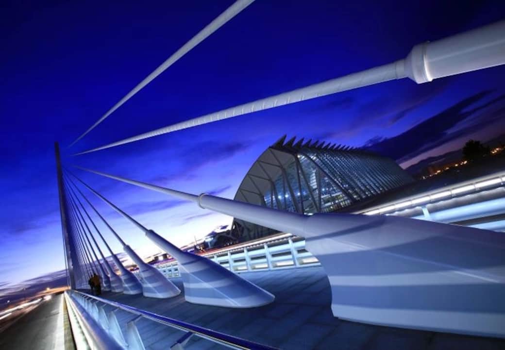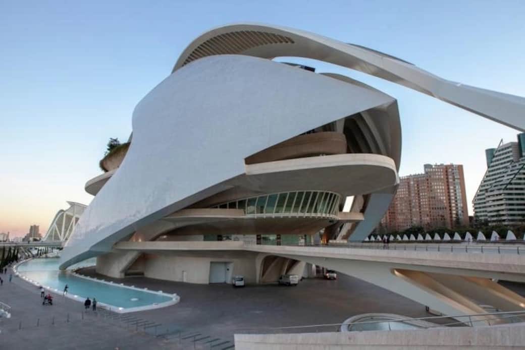 The Ciudad de las Artes y las Ciencia  (Valenciá: Ciutat de les Arts i les Ciències) is a cultural and architectural complex in the city of Valencia. It is the most important modern tourist destination in the city of Valencia and one of the12 Treasures of Spain.Designed by Santiago Calatrava and Felix Candelá the project began the first stages of construction in July 1996, and was inaugurated on 16 April 1998.